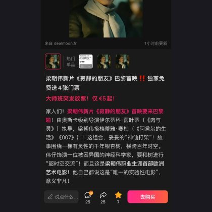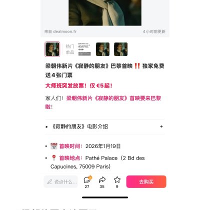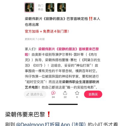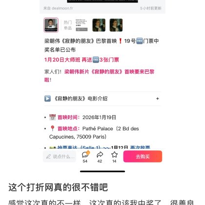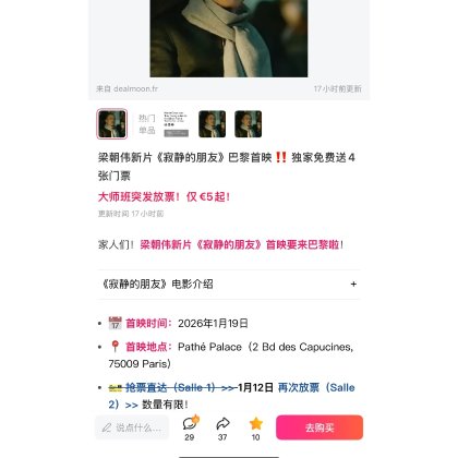 小编看看我吧求求中奖吧🧎♀️🧎♀️🧎♀️#dealmoon 跪求票 许愿求求中奖吧 小红书已经宣传 救救孩子吧cinephile真的很想看这部电影 也是伟仔忠实粉丝 真的好想看![[流泪]](/assets/emoji/comment-emoji/dm_liulei@2x.png?v=1)