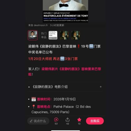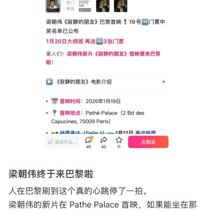 家人们!梁朝伟新片《寂静的朋友》首映要来巴黎啦!